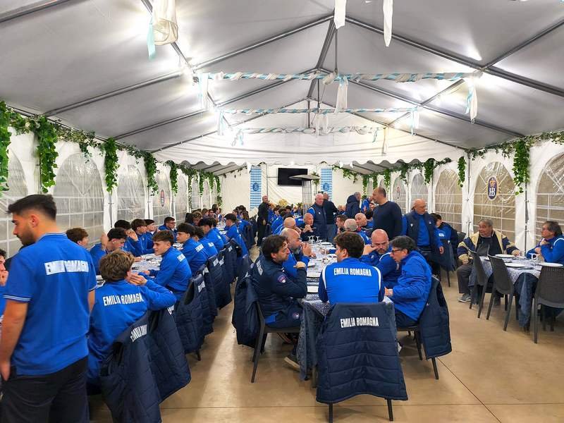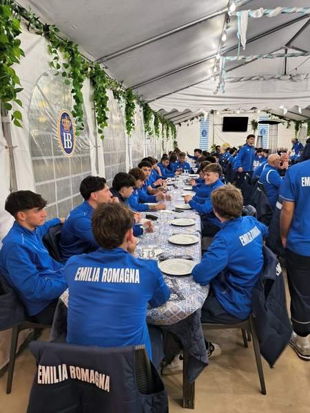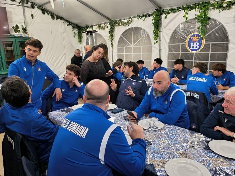 REDAZIONE WEB CRER - GALLIPOLI (LE) – La fase a gironi della 62ª edizione del Torneo delle Regioni si chiude con un'immagine che va oltre i risultati del campo. Ieri sera, il Presidente del CRER Simone Alberici, affiancato dal Vice Presidente Vicario Giacomo Fantazzini e da tutta la dirigenza presente in Puglia, ha voluto riunire l'intera spedizione emiliano-romagnola in pizzeria. Un momento conviviale e di grande coesione che ha unito staff tecnici, dirigenti e atleti per tirare le somme di questa intensa tre giorni pugliese.
